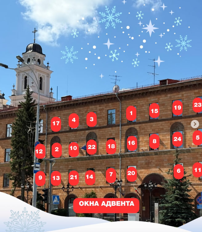 На здании в Минске засияли все 24 окна гигантского адвент-календаря