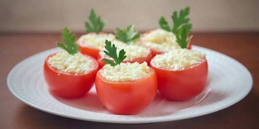 Помидоры с чесночно-сырной начинкой