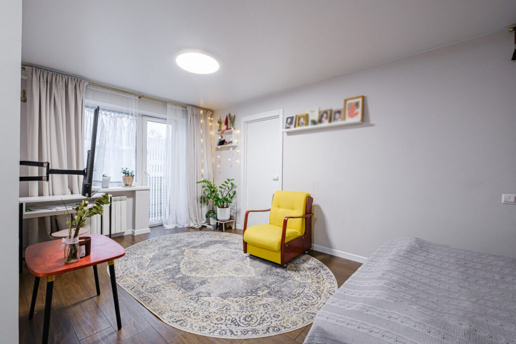Между живописным парком Дружбы Народов и уютным Комсомольским озером была обнаружена замечательная двухкомнатная квартира с интересным и стильным ремонтом. Несмотря на то, что одна из комнат является проходной, владельцы квартиры с умом организовали пространство, выделив место для полноценной кровати, что создает комфортную атмосферу. Дизайн интерьера радует глаз: элементы открытого кирпича и яркие текстильные акценты придают помещению индивидуальность и уют.