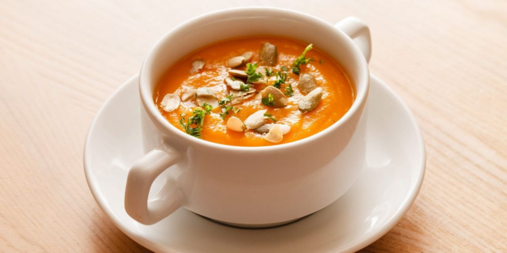 Яркий оранжевый суп не просто утоляет голод, он отлично работает как антидепрессант в пасмурный день. Фисташки здесь выступают ключевым акцентом, который своей легкой соленостью и плотностью оттеняет сладость тыквы.
