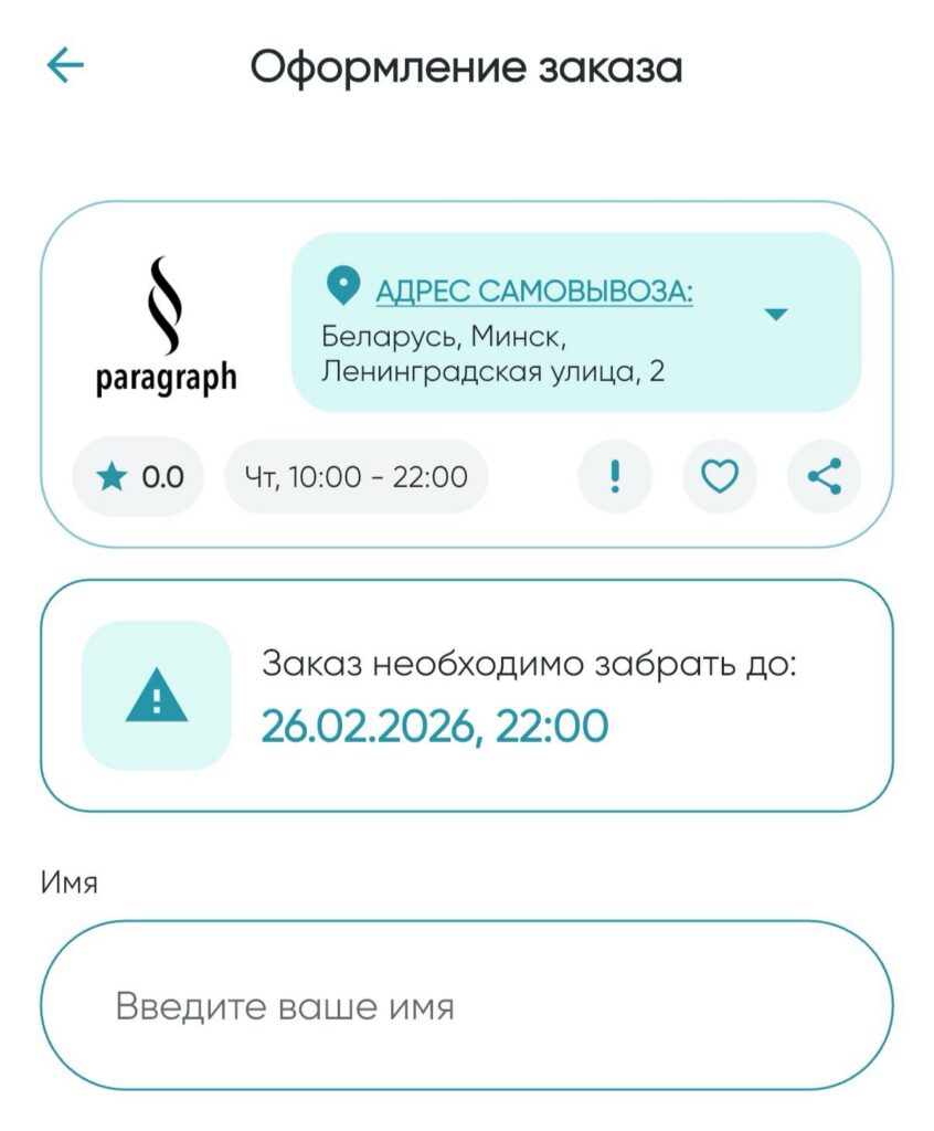 Заказы оформляются строго день в день. Заведение само указывает адрес и время, до которого нужно приехать за «спасенной» едой. Это логично: речь идет о продуктах с коротким сроком хранения, которые нужно продать.