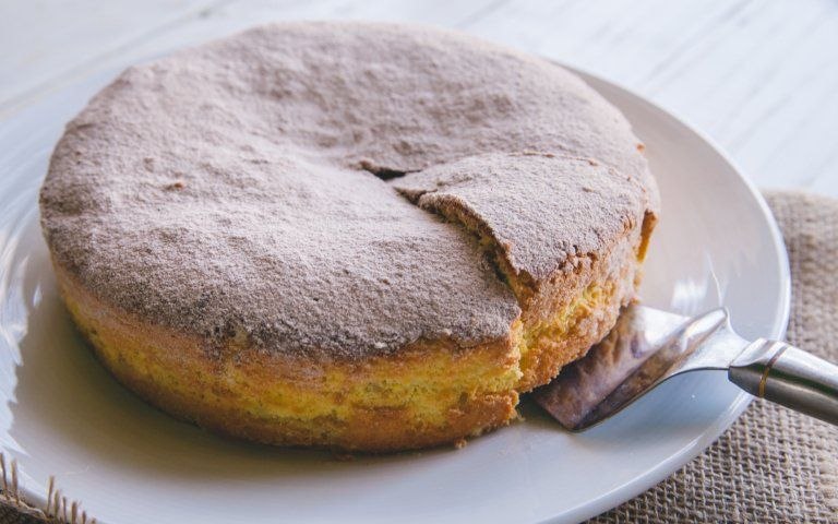 6. Дайте пирогу полностью остыть в форме, затем извлеките, посыпьте сахарной пудрой и подавайте к столу.