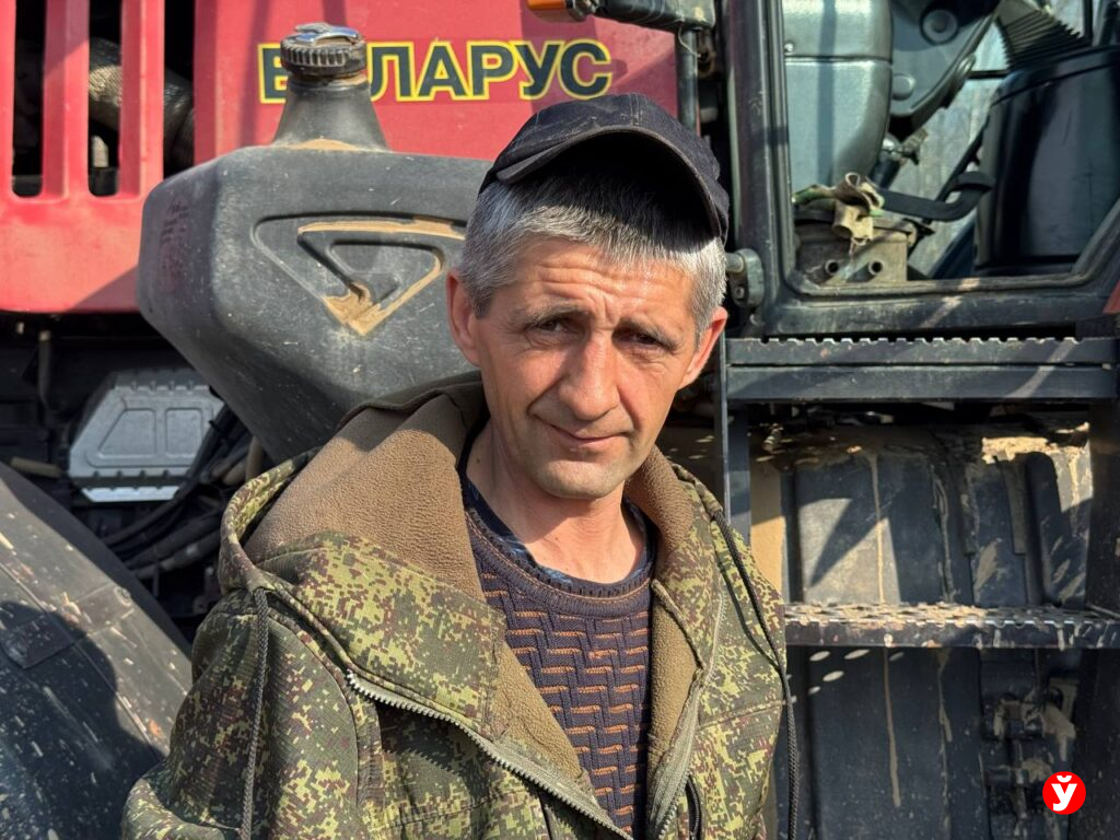 В поле механизатор Виталий Филиппович, чье имя в прошлом году занесли на районную Доску почета. Работает на тракторе МТЗ-35-22.