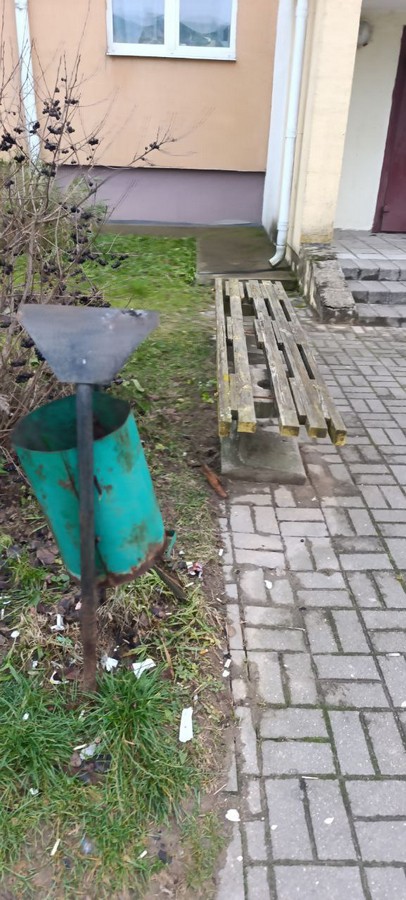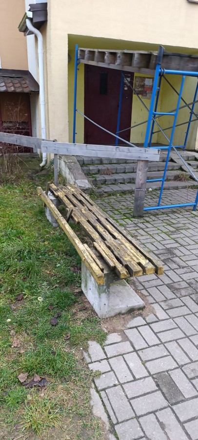 Один из подъездов дома оказался в строительных лесах. Некоторые лавочки рядом оставляют желать лучшего, как и благоустройство в целом. Но назвать это разрухой и запустением язык как-то не поворачивается. Слишком уже сильные и яркие эпитеты для данного случая. Видимо админ данного канала привык гиперболизировать факты. Возможно, от этого напрямую зависит его гонорар.