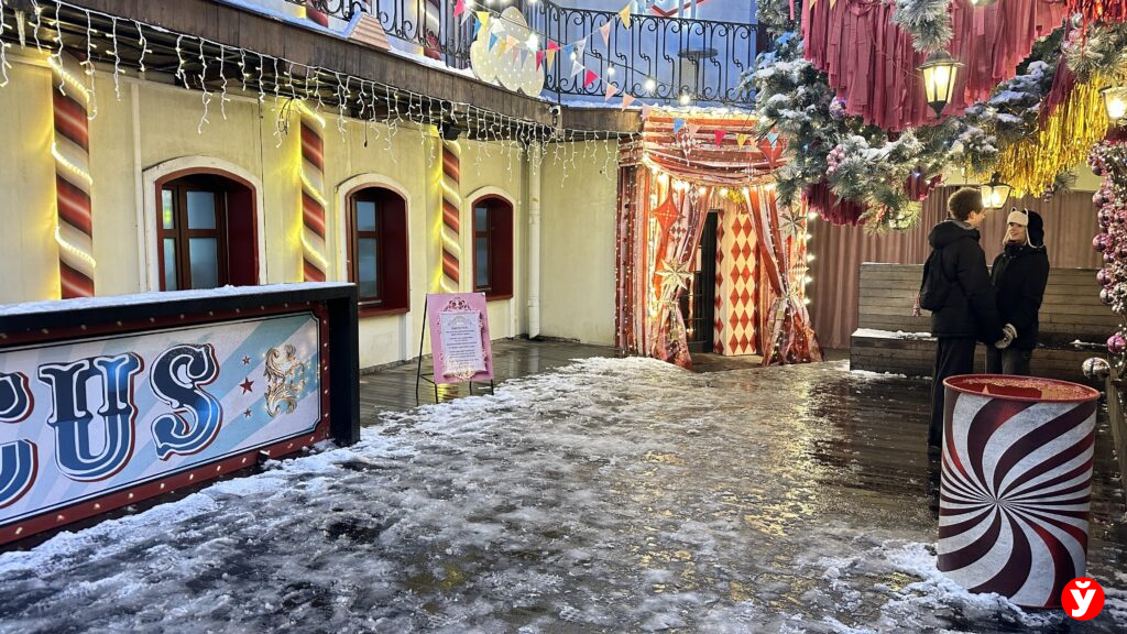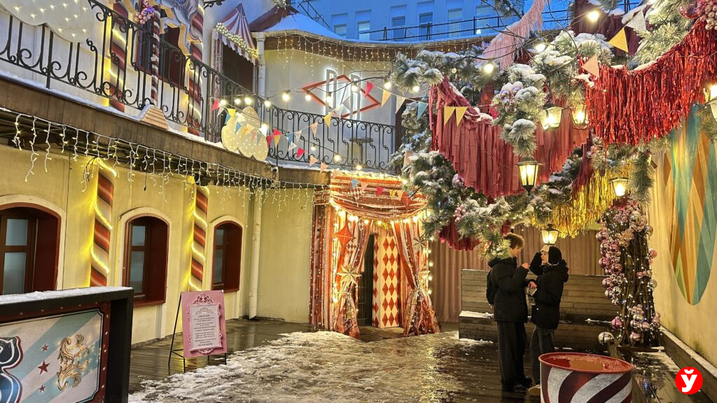 Первая локация расположилась по адресу Комсомольская 13А. Известный дворик каждый год удивляет масштабными проектами: в прошлом сезоне здесь царила розовая праздничная атмосфера, а в этом — устроили ретро-цирк-шапито.