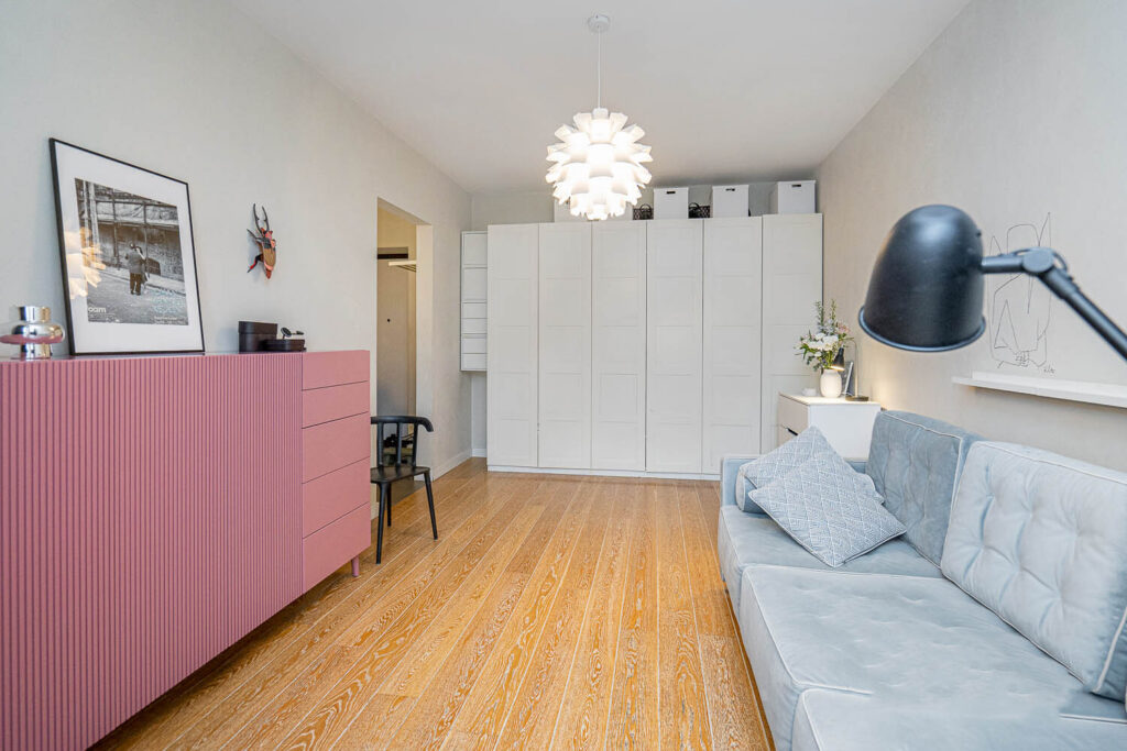 На проспекте Независимости, неподалеку от главного здания «Беларусьфильм», выставлена на продажу отремонтированная однокомнатная квартира в сталинском доме. Это предложение представляет собой отличную возможность для тех, кто хочет сразу заехать и начать жить, поскольку в квартире уже имеется вся необходимая мебель и современная техника.