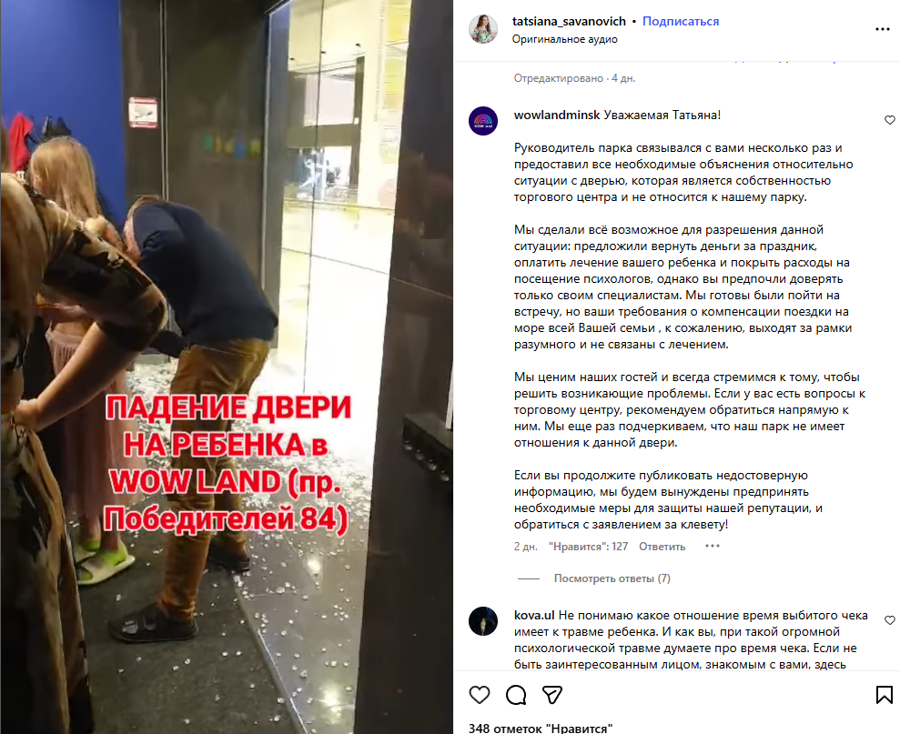 В комментариях под постом мнения разделились, особенно после появления там официальной позиции администрации Wow Land Minsk.