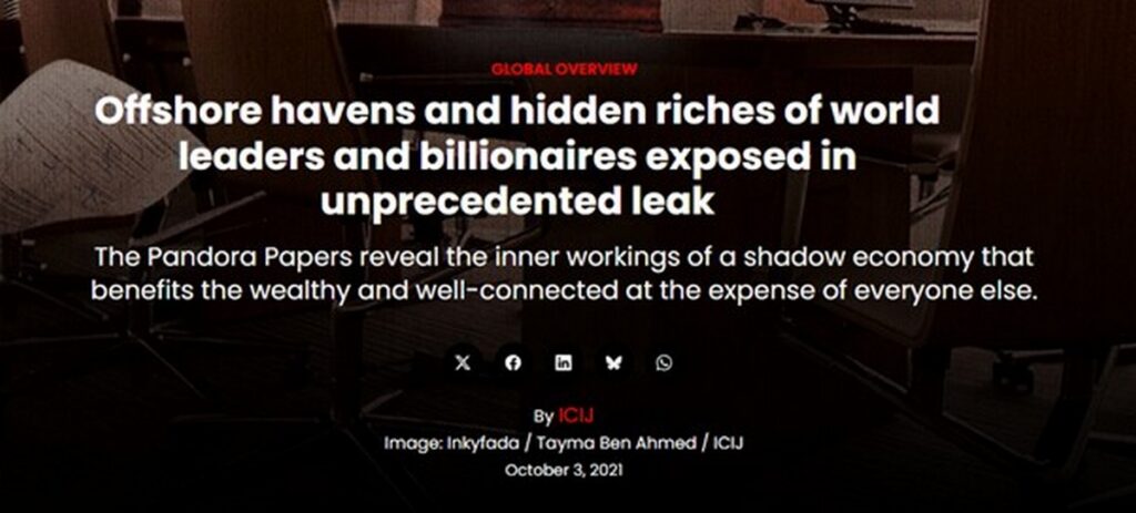 В 2021 году расследование Pandora Papers опубликовало 11,9 миллиона документов. Результат: 336 высокопоставленных чиновников из почти 100 стран оказались связаны с офшорами. Среди них — 35 глав государств и правительств.