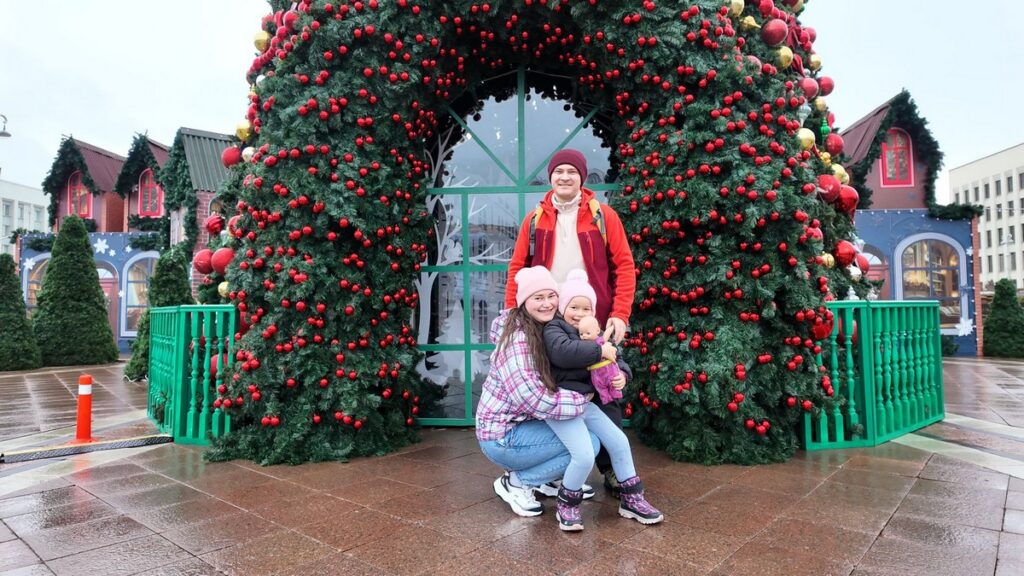 Беларусь же начала удивлять семью буквально с границы. По пути через Европу они нигде не видели новогодней иллюминации, разве что на частных магазинчиках. Наша же страна засияла уже на границе. Можно только представить восторг четырёхлетнего ребенка.