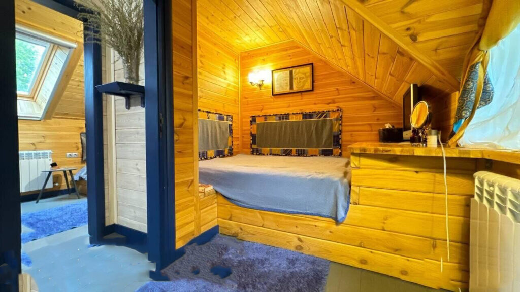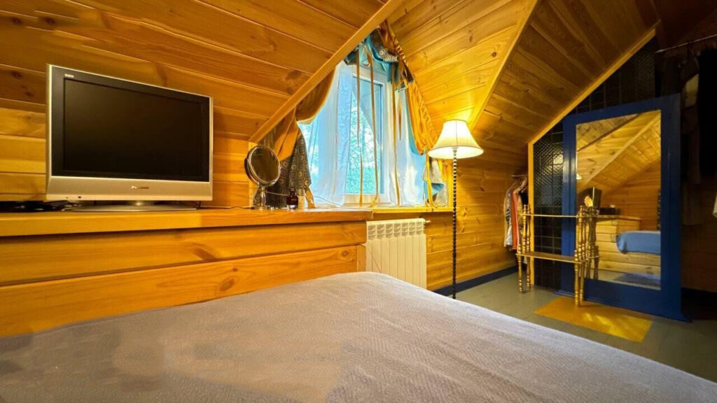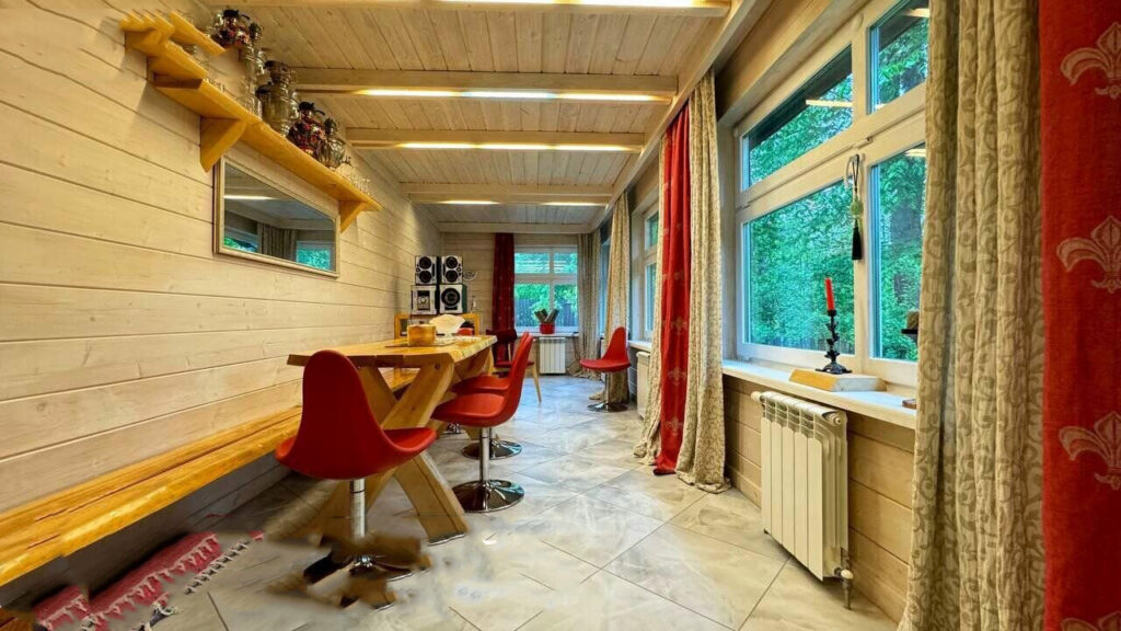 Одной из главных жемчужин этого дома является столовая-веранда, из окон которой открывается панорамный вид на реку. На окнах установлены автоматические роллеты. На мансардном этаже расположены три полноценные спальни, каждая из которых оборудована кроватями и шкафами. Здесь есть деревянные полы, а также мансардные окна с защитными шторами типа «блэкаут».