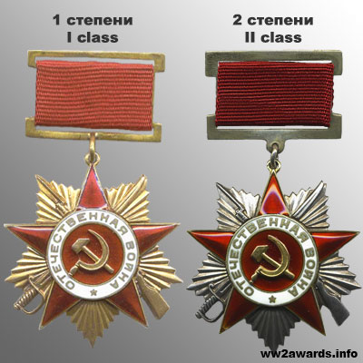 В числе первых наград, появившихся в эти годы, был орден Отечественной войны. В мае 1942 года орден был учреждён со степенями — первой и второй, высшей из которых являлась первая.