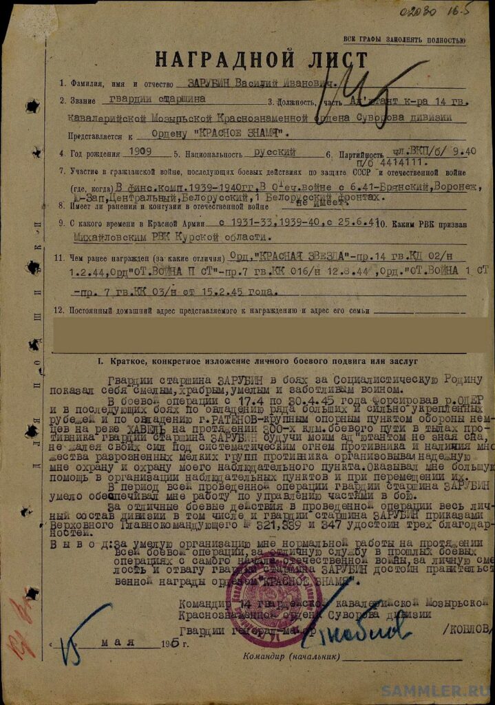 Для белорусских читателей: приказом Верховного Главнокомандующего от 15 января 1944 года 14-й гвардейской кавалерийской дивизии, в рядах которой, как мы знаем, сражался Василий Зарубин, как дивизии, отличившейся в боях с немецкими захватчиками за освобождение города Мозыря, было присвоено почётное наименование «Мозырская».