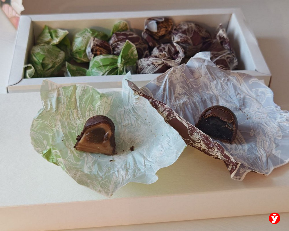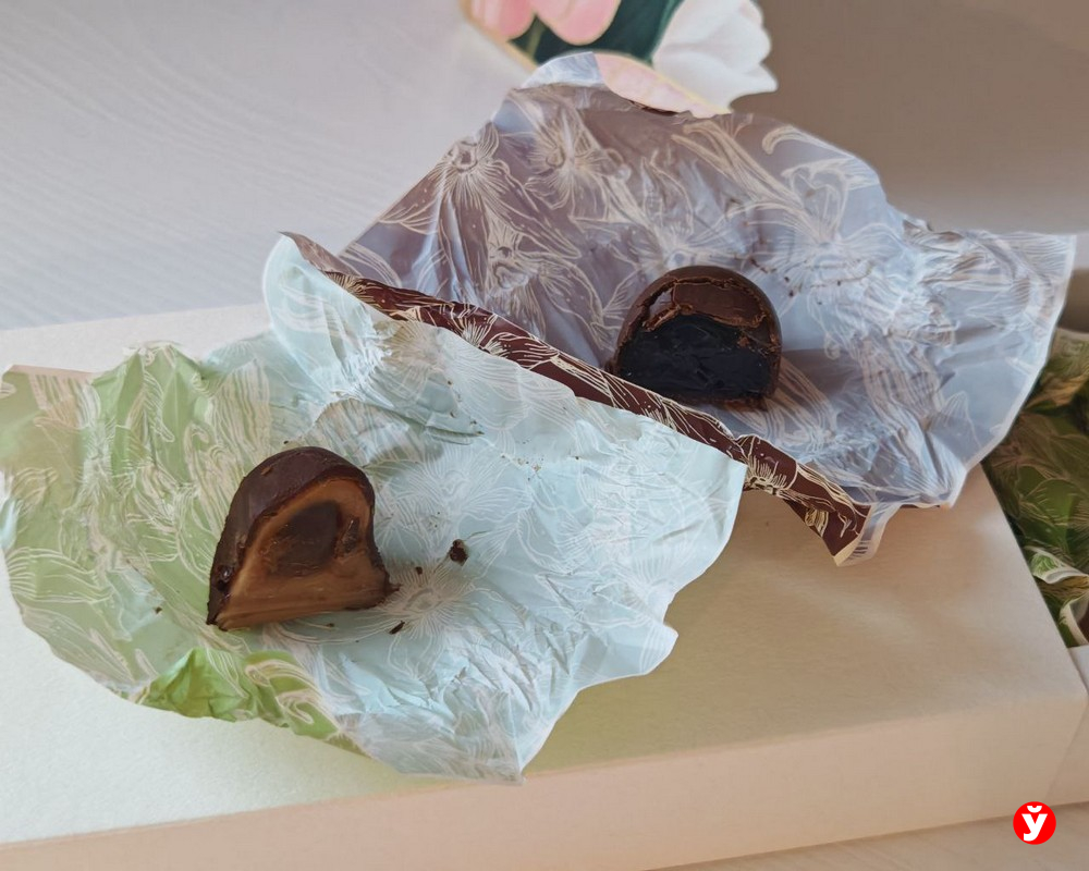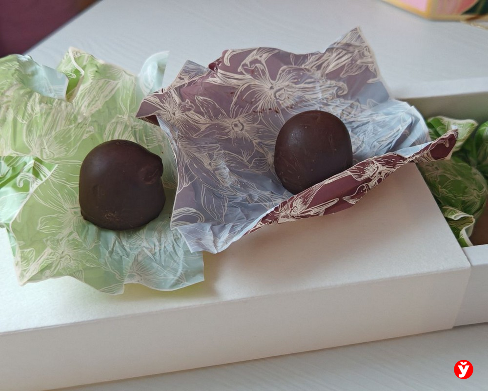 А вот «Шокомельку» мы уже пробовали раньше: разве что упаковка конфет была другая. Вкус знакомый: сливочное суфле и тягучая карамель. Вкусно, хотя больше двух штучек не осилишь.