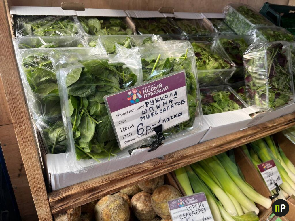 В розничной части выбор тоже радует обилием свежих позиций. Зелень сейчас представлена широко: руккола — 6 рублей за пучок, петрушка и укроп — около 4 рублей. Нашли микс салатов по 6 рублей за пачку. Тимьян и розмарин стоят по 7 рублей за 100 грамм.