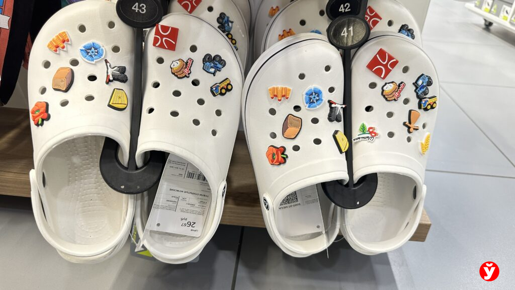 - Кроксы: доступны по очень демократичным ценам: женская модель — 28 рублей 36 копеек, мужская — 26 рублей 67 копеек.
