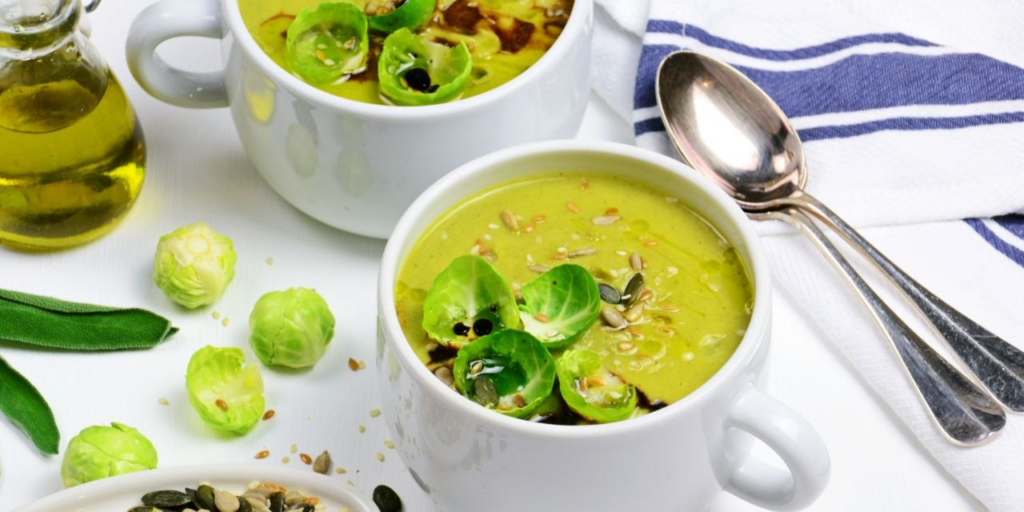 Тонкая работа с горьковатым от природы овощем. Длительная карамелизация на сливочном масле меняет молекулярную структуру капусты, убирая резкость и оставляя бархатистую сладость. Сельдерей добавляет пряный объем, лук-шалот — мягкость без агрессивной луковой остроты. Текстура выходит плотной и обволакивающей за счет природного крахмала кочанчиков брюссельской капусты.