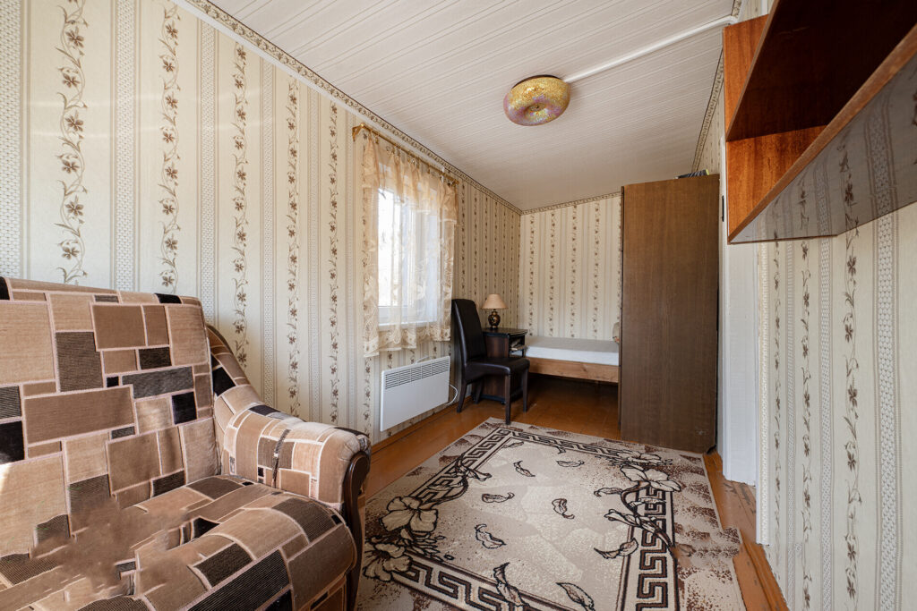 Внутри дома находятся две изолированные комнаты, которые можно использовать как спальни или для других нужд. Санузел также располагается в доме. Отопление осуществляется с помощью электрических приборов, а газ подается из баллона. Канализация организована местным способом, а вода поступает из центрального водопровода.