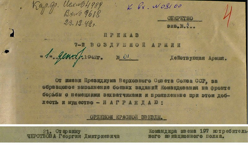 «Ваш сын младший лейтенант Черствов Георгий Дмитриевич 3 октября 1943 года, будучи заместителем командира авиаэскадрильи, не вернулся с боевого задания…»