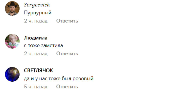 Ее публикация моментально собрала десятки откликов от других очевидцев, которые разделили удивление. Эмоции в комментариях варьировались от шока до восхищения. «Сказать, что я была в шоке, — ничего не сказать», «Я тоже заметила, что сегодня было розовое утро. Красиво и необычно», «Да и у нас тоже был розовый», — делились пользователи.