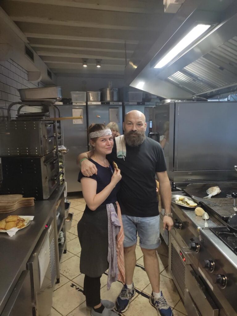 Моей первой работой на кухне стала Terra Pizza. Мне было 19, когда увидела объявление: «Требуется повар в холодный цех». Я слукавила, что имею огромный опыт, хотя до этого жила в Мире и мыла посуду в кафе возле Мирского замка и в гостином дворе. Подумала, что эта работа мне необходима, мне нужны были деньги. Позвонила, сказала, что опыт имеется: три года. Меня взяли, и я отработала там три года, научилась готовить. Никто не знал, что у меня нет опыта, но у меня была задача, и я ее оправдала. Сначала была помощником, потом поваром, потом меня отправляли учиться делать суши, пиццу.