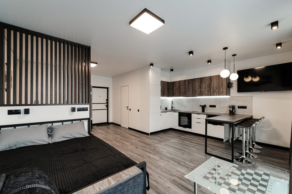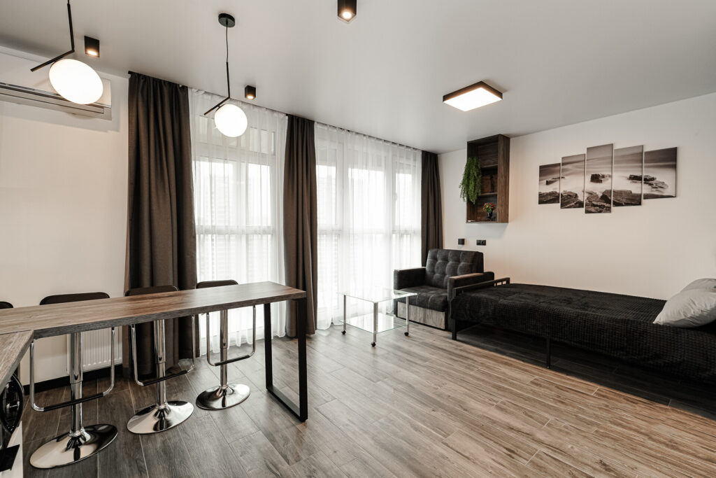 Думаете, что снять квартиру дешевле тысячи рублей в месяц в “Минск-Мире” невозможно? Это вовсе не так. Мы нашли чудесный и недорогой вариант дизайнерского жилья с французскими окнами и стильной черно-белой цветовой гаммой интерьера. Стоимость аренды удивляет, но только в приятную сторону.