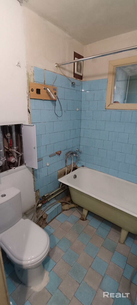 При этом основные предметы санузла — ванна и туалет — вполне себе чистые. Также в квартире проведены электричество, вода и газ. Хотя с изоляцией проводов стоит быть осторожнее.