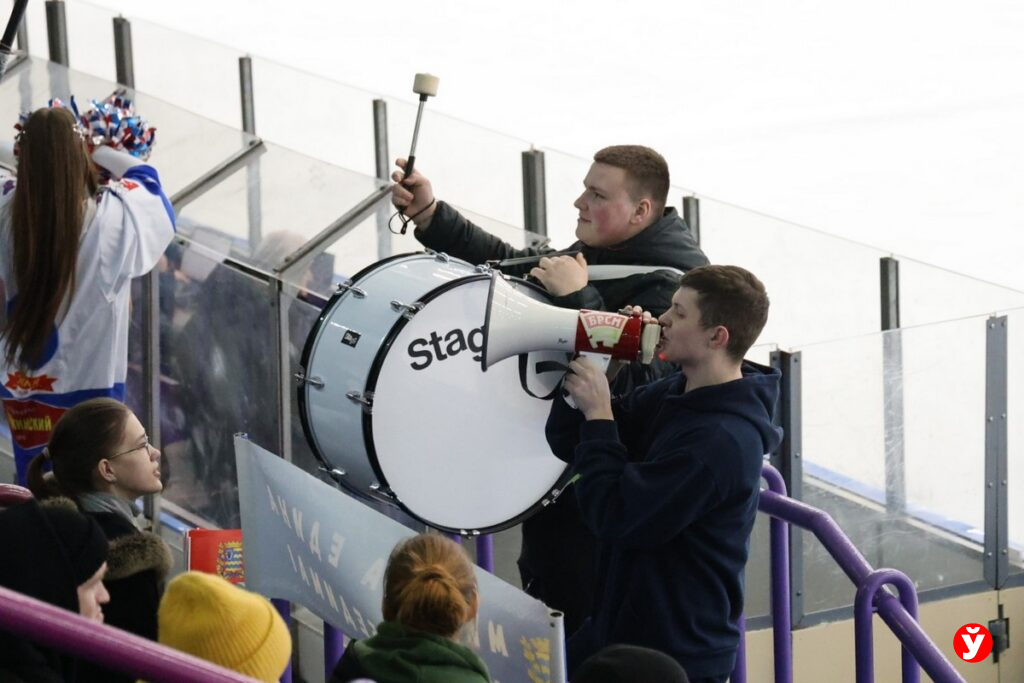 В перерыве общаемся с болельщиками. Очаровательная Людмила приехала в Минск в гости к бывшей одногруппнице. Сама девушка — уроженка Островца. Узнала, что играет команда её области, и не могла не уговорить подругу прийти на трибуны.