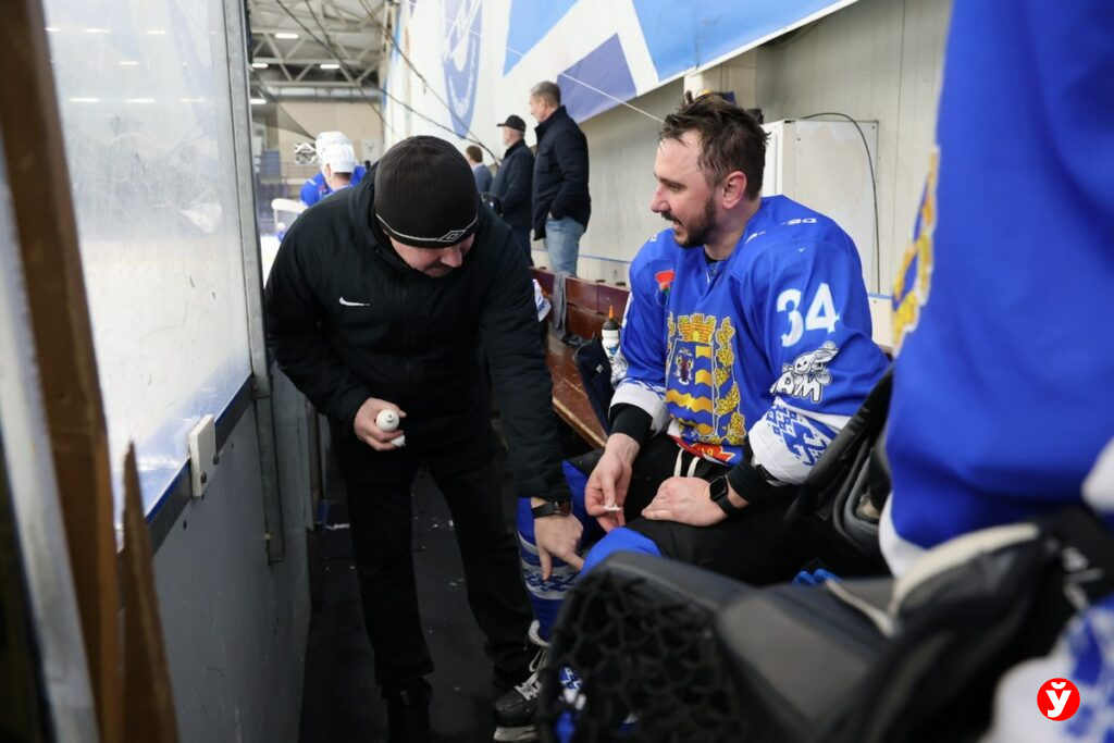 На этом бело-синие не остановились. Они плотно встали на площадке соперника и продолжали наносить удар за ударом. Спустя небольшой промежуток времени стало повеселее: Минская область за 5 минут и 20 секунд до конца выходит вперёд. Автор шайбы — № 8, он же Дмитрий Мелешко.