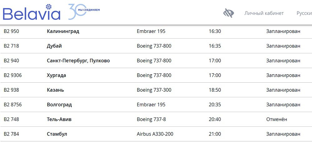 Авиакомпания Белавиа отменила рейс из Тель-Авив в Минск, который должен был отправиться 1 марта в 20:40.