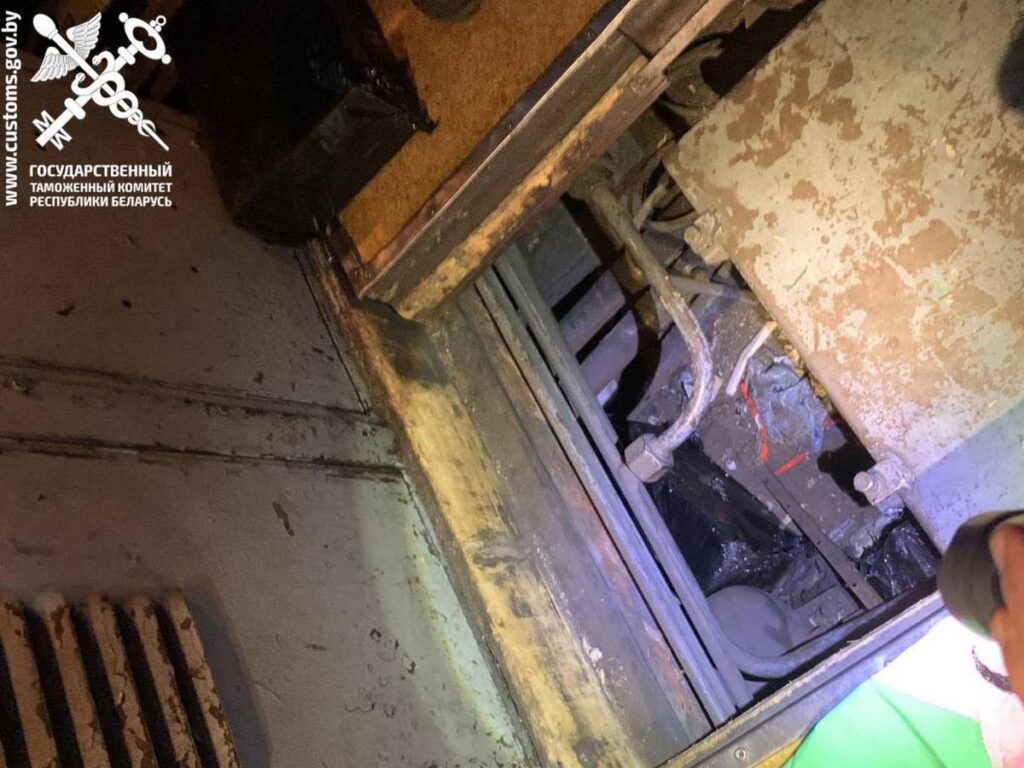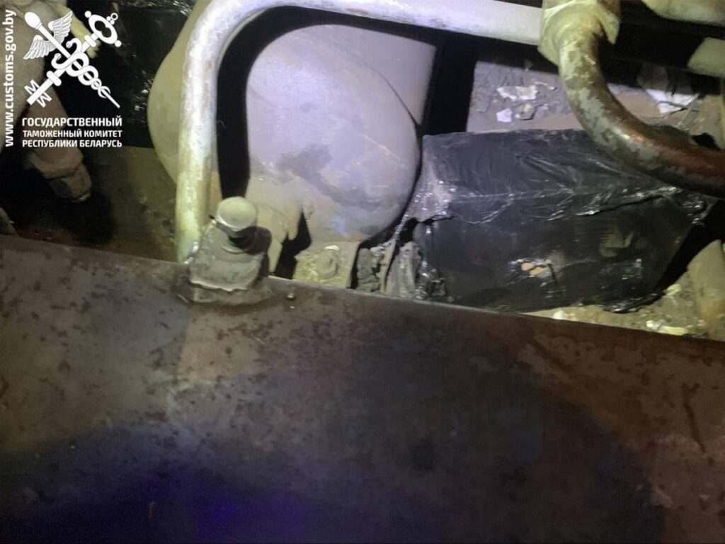 Поезд прибыл для оформления в пункт пропуска «Брест-Восточный» из Польши. Брестские таможенники обнаружили спрятанный товар в кабине локомотива — подняв люк в полу, они извлекли из пустотелого пространства 18 картонных коробок, упакованных в черную пленку.