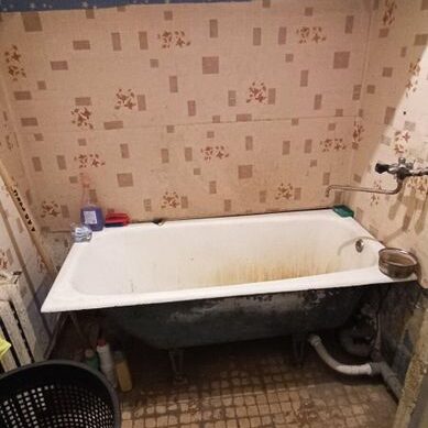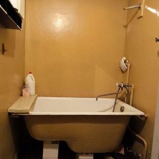 Вода, канализация и газ — центральные, отопление паровое. Судя по фото, квартира требует определенного ремонта.