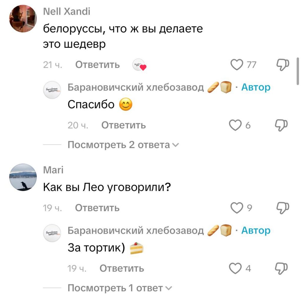 Все потому, что барановичские хлебопеки решили «хайпануть» и выбрали для продвижения своего нового торта «Медовая сласть» не кого-нибудь, а самого Леонардо Ди Каприо! Видео с участием мирового селебрити стало хитом в TikTok. Меньше чем за сутки оно собрало более 22 тысяч лайков и сотни комментариев — пользователи отмечают поразительную реалистичность интеграции актера в местный антураж.
