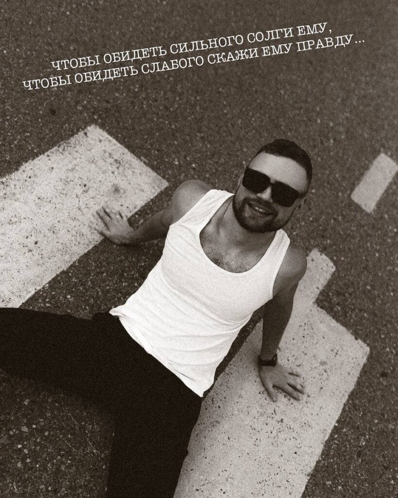 — «Старшаки» сказали, что знают продюсера в Минске, который ищет такого музыканта. Я надел байку, крест отцовский, большой, серебряный, и мы с ребятами записали трек. Моя будущая супруга сидела на лавочке и слушала, стесняясь. Собрался народ. Из столицы за мной никто не приехал — ребята просто пошутили. Но песня пошла по району. Ребята поддерживали: «Давай ещё пиши». Папа договорился со студией в ДК Бобруйска. Меня профессионально записали, — рассказывает артист.