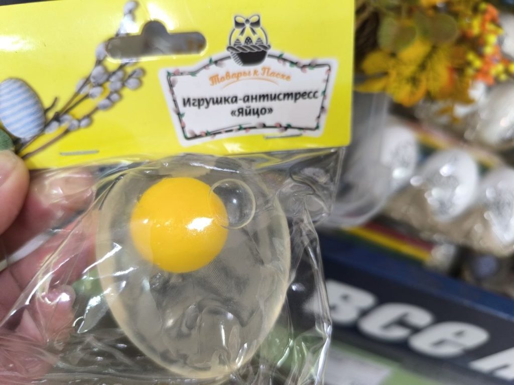Нашли для создания праздничного настроения наборы для творчества, гирлянду пасхальную по 4 рубля 60 копеек, переливы за 4 рубля и даже игрушку-антистресс «Яйцо» за 2 рубля 25 копеек.
