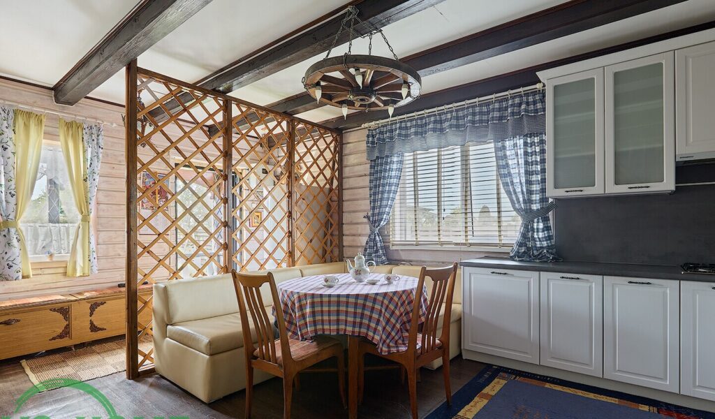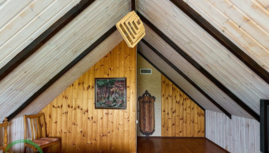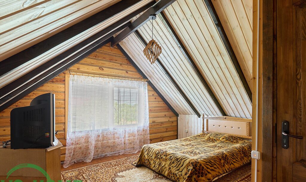 На втором этаже, расположенном под скатной крышей, находятся две отдельные комнаты, что позволяет обеспечить комфортное размещение для гостей или членов семьи.