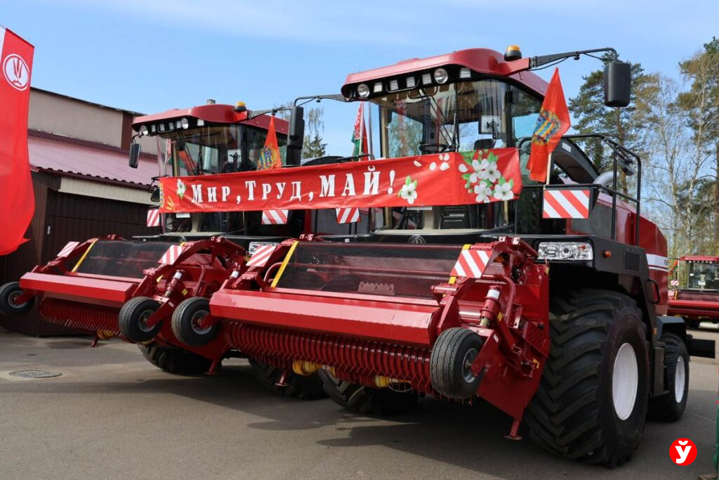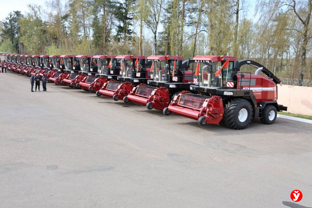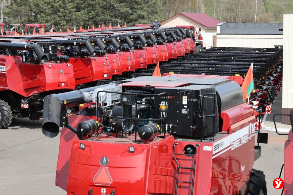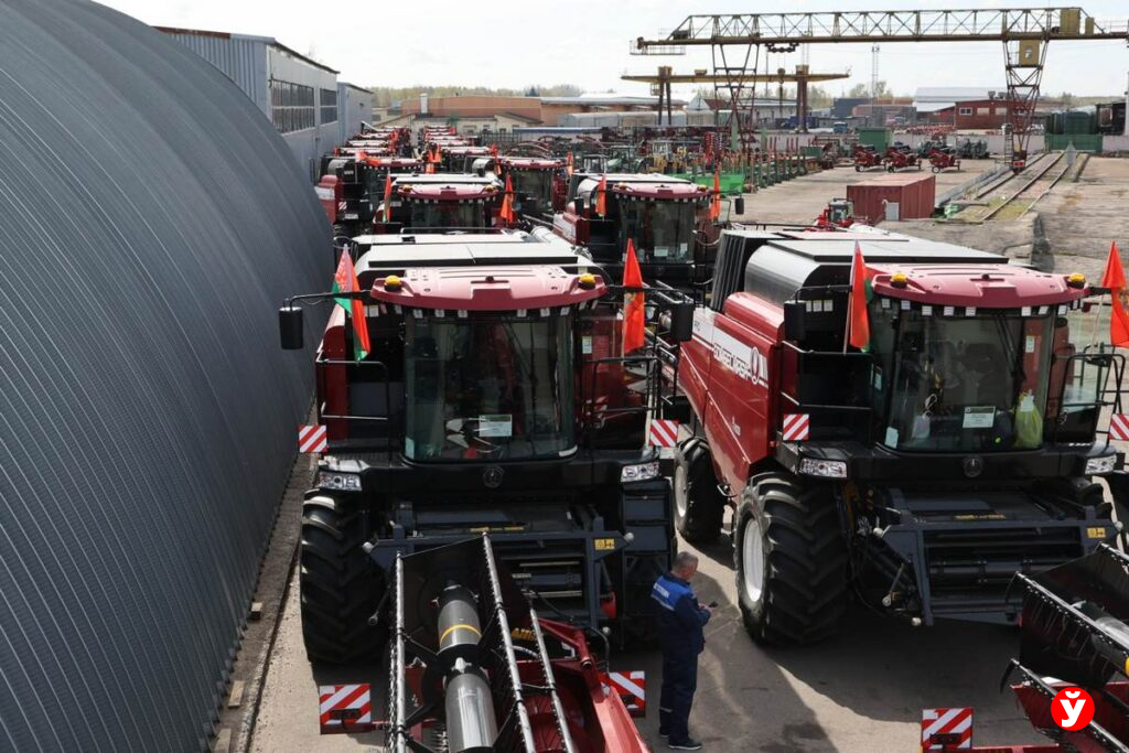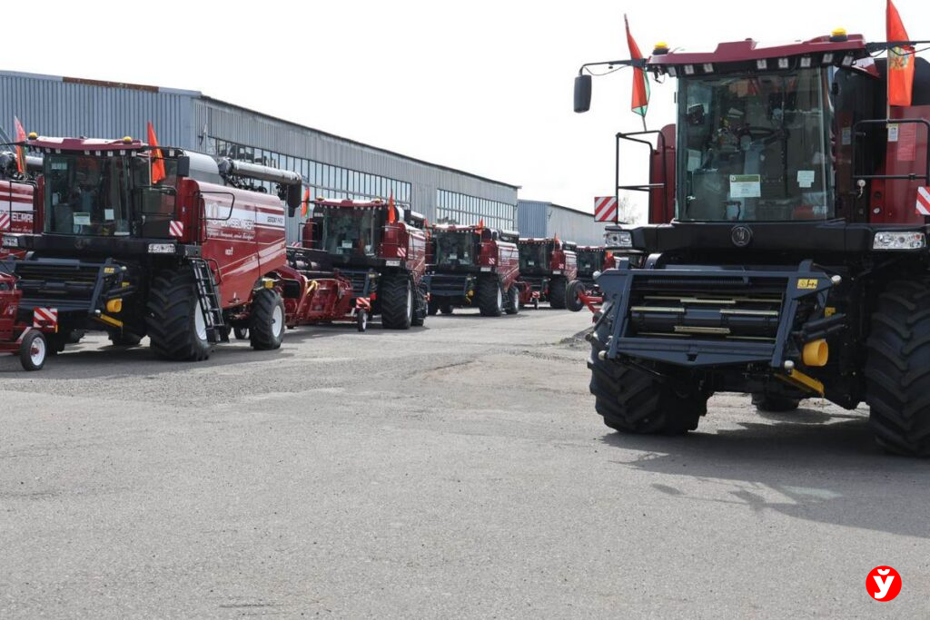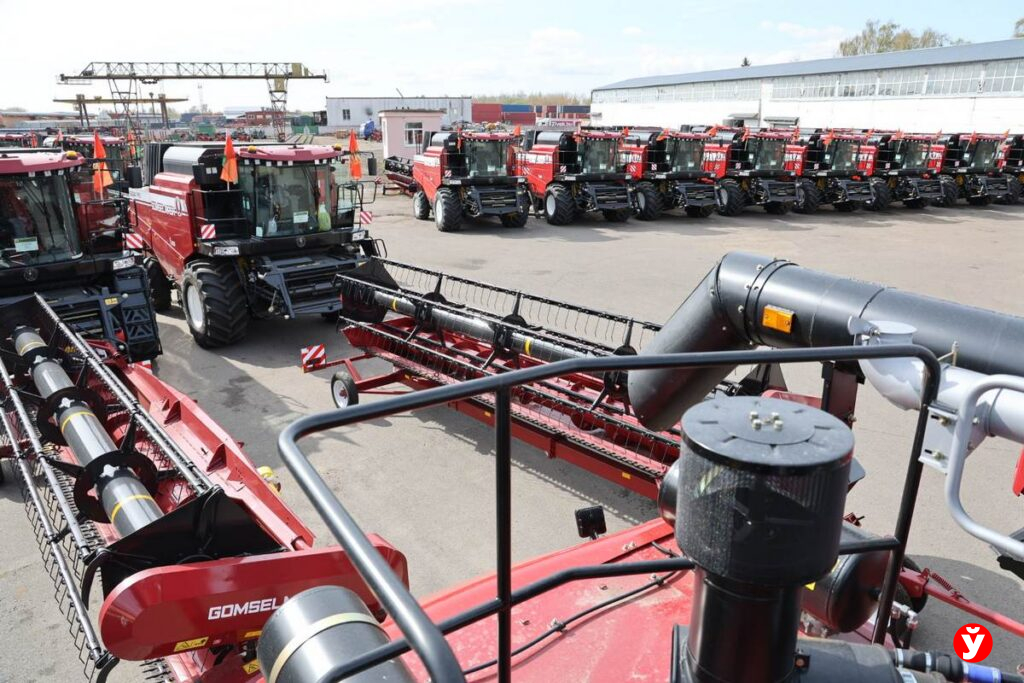 На площадке базы материально-технического снабжения «Михановичи» «Миноблагросервиса» в прямом смысле яблоку негде упасть: вся территория заставлена мощными комбайнами, сошедшими с конвейера «Гомсельмаша». Ровно 100 стальных красавцев, еще пахнущих краской и металлом. Пару минут – и они отправятся в долгий путь. Сначала – в хозяйства Минщины, потом – в поля, на жатву.