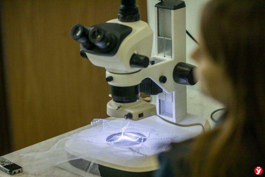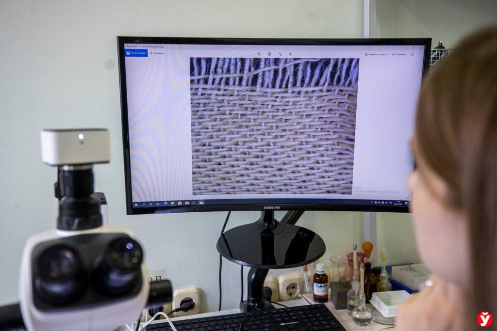 — Наша лаборатория оснащена хорошей материально-приборной базой, которая позволяет производить экспертизы разного рода, в том числе объектов легкой промышленности. Мы используем микроскопы, которые позволяют выводить изображение объекта на экран компьютера в режиме реального времени, фотографировать и увеличивать его в несколько сотен раз. Это помогает определить самые мельчайшие компоненты объектов, получить их четкие изображения и, благодаря этому, очень точно определить их очертания, форму и размеры. Также применяем инфракрасную спектроскопию, которая применяется для определения разных видов синтетических волокон, нитей и позволяет их дифференцировать. Мы используем ИК-спектрометры новейших моделей. Они не громоздкие и в считанные минуты определяют состав того или иного вида синтетики. Также используем поляризационный микроскоп. Он позволяет исследовать в поляризованном свете текстильные волокна, определять их вид и происхождение.