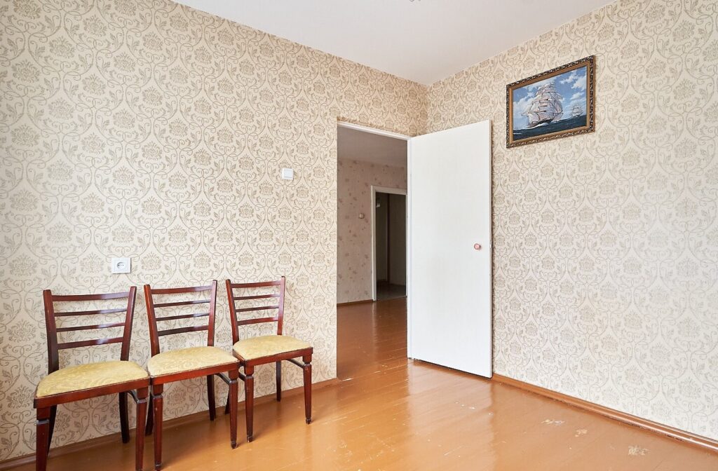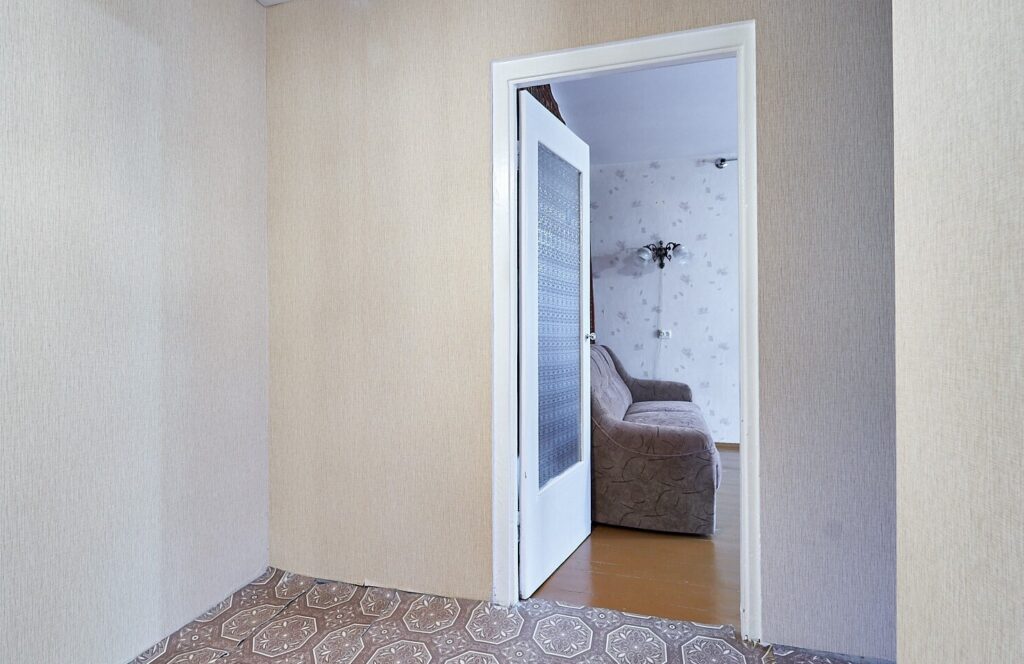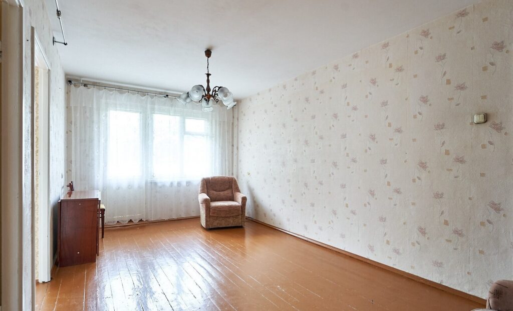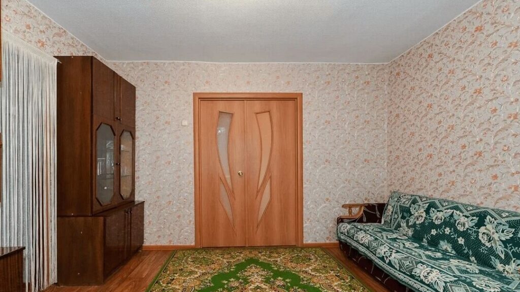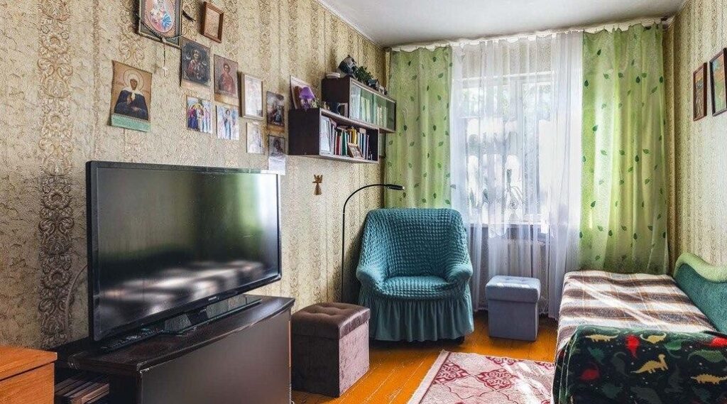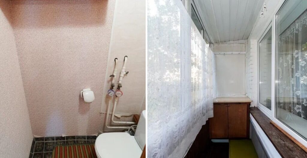 В 2023 году в этом доме был проведен капитальный ремонт, однако сама квартира нуждается в обновлении и ремонте. На полах находятся деревянные доски и линолеум, а в окнах установлены стеклопакеты. Из гостиной имеется выход на застекленный балкон, который, к слову, является проходной комнатой. Санитарные узлы в квартире раздельные.