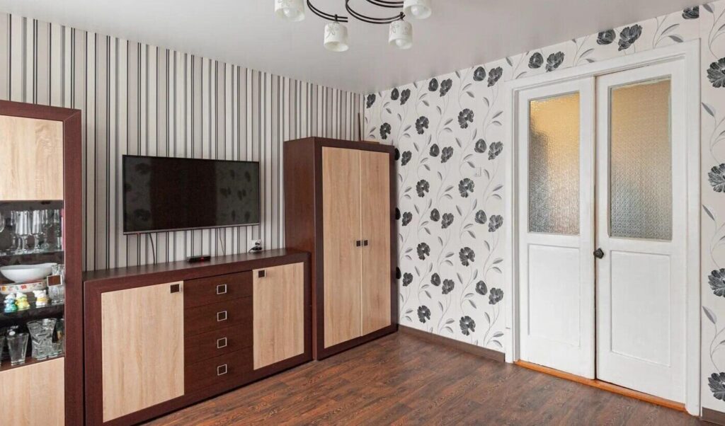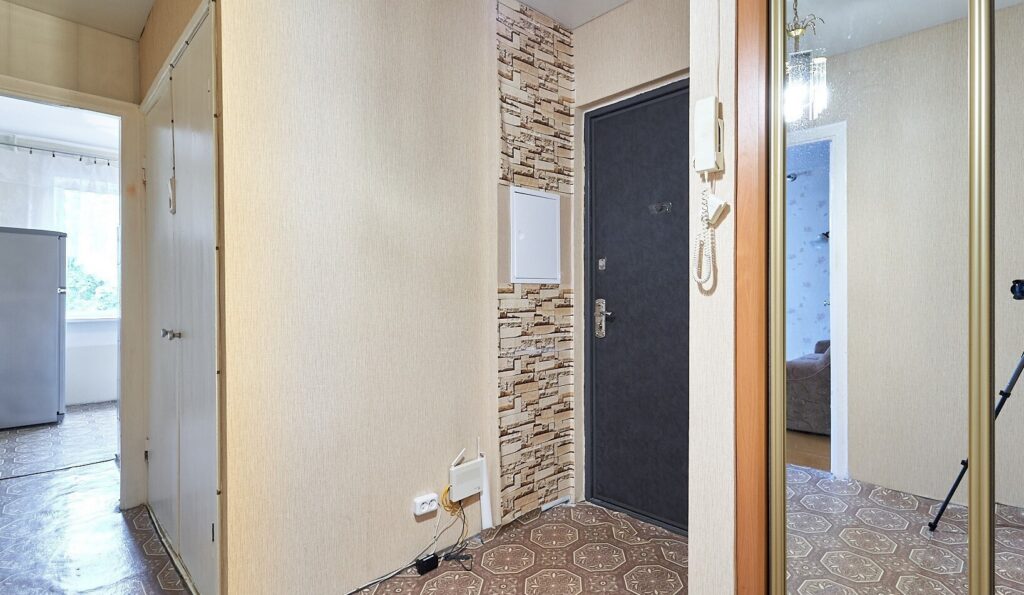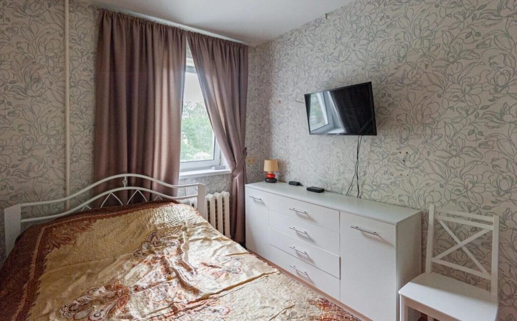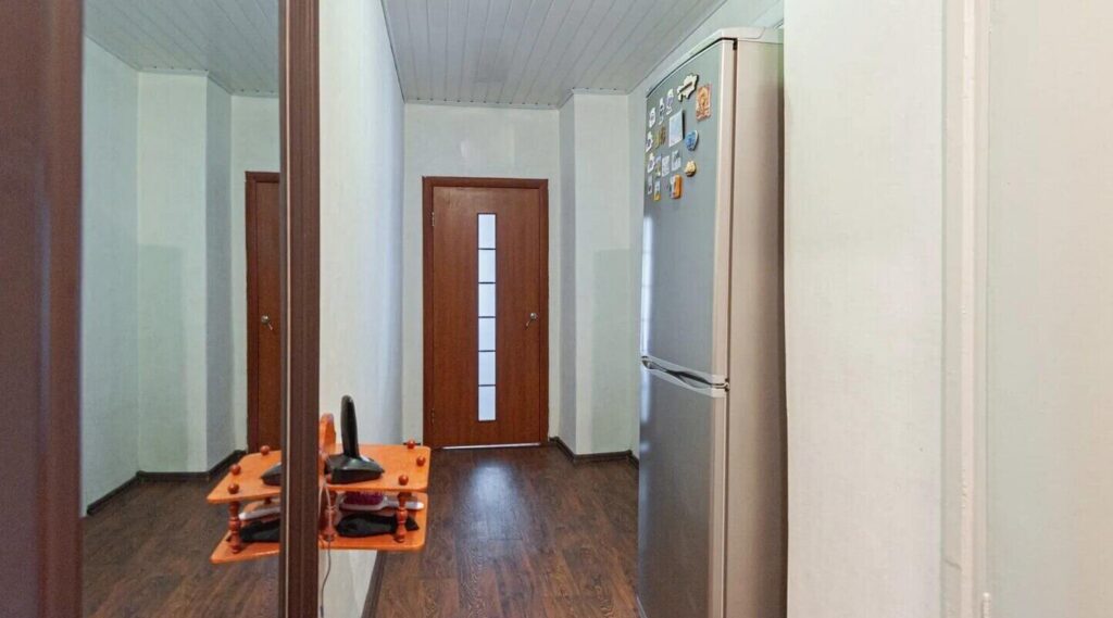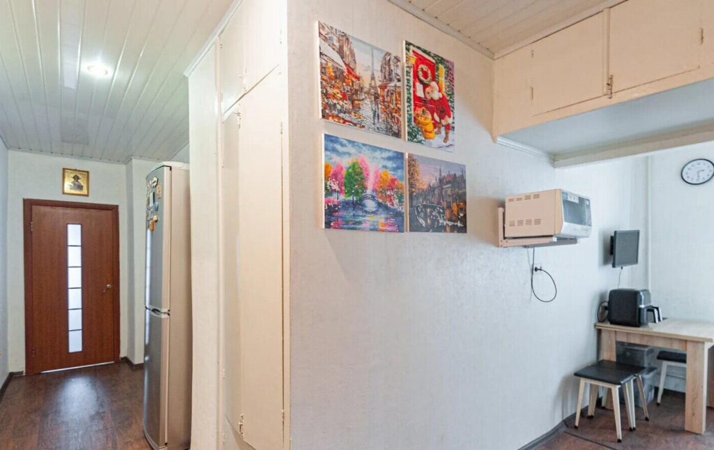 В 2023 году в этом доме был проведен капитальный ремонт, однако сама квартира нуждается в обновлении и ремонте. На полах находятся деревянные доски и линолеум, а в окнах установлены стеклопакеты. Из гостиной имеется выход на застекленный балкон, который, к слову, является проходной комнатой. Санитарные узлы в квартире раздельные.
