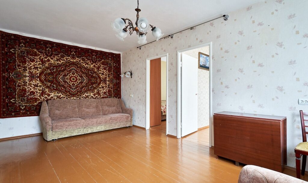 На первом этаже пятиэтажного дома по адресу Седых, 26 выставлена на продажу трехкомнатная квартира площадью 57,9 квадратных метров. Кухня занимает 5,7 квадратных метра. Здание было возведено в 1965 году, а капитальный ремонт был проведен в 2019 году.