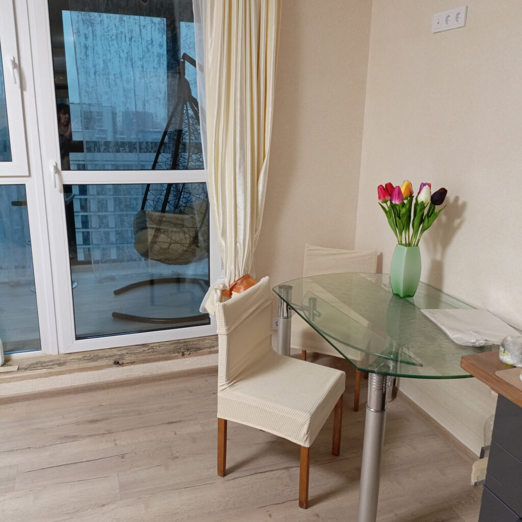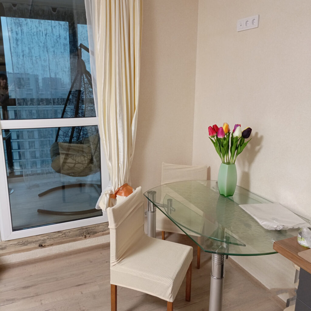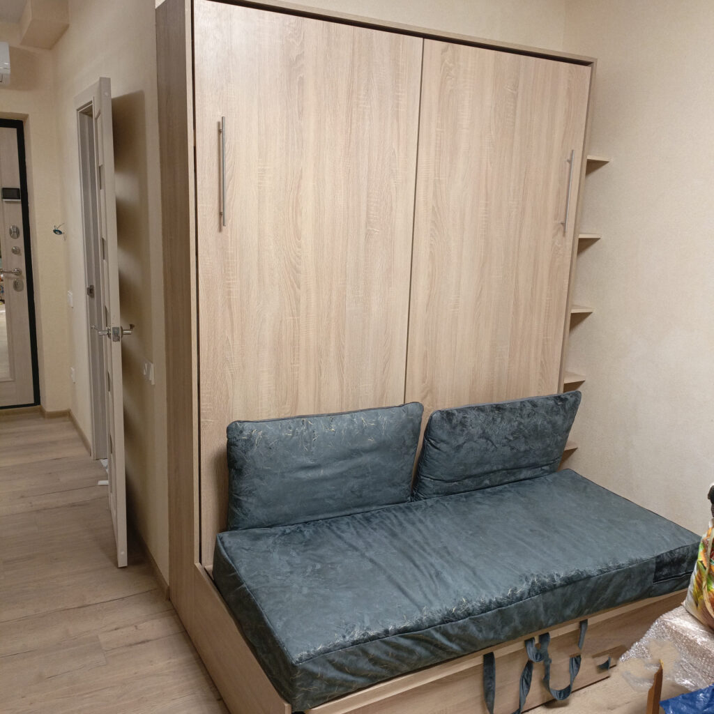 Одним из преимуществ жилья является светлое пространство и новая мебель (в квартире был недавно сделан евроремонт). Имеется и вся необходимая бытовая техника и даже больше: холодильник, посудомоечная машина, кондиционер, стиральная машина и т.д. Подъемная кровать в жилой зоне удобно превращается в диван и освобождает пространство.