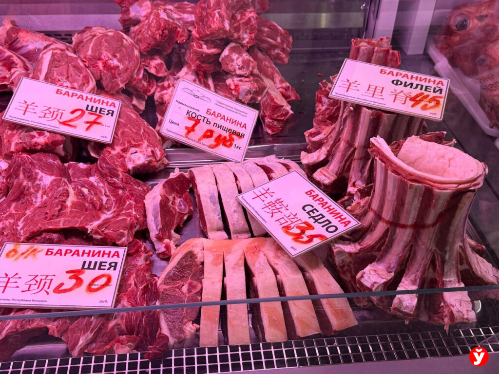 А если пройти чуть дальше — можно отыскать баранину. Цены вот какие: филей — 45 рублей, седло — подешевле: 35 рублей. Хотите сэкономить? Тогда можно взять баранью кость — всего 7 рублей за кило, для наваристого бульона то, что надо. Шея обойдется в 25-30 руб./кг.