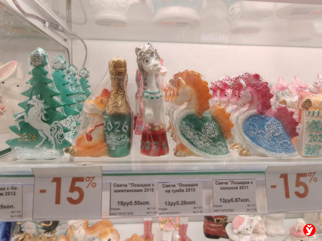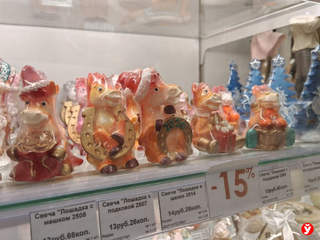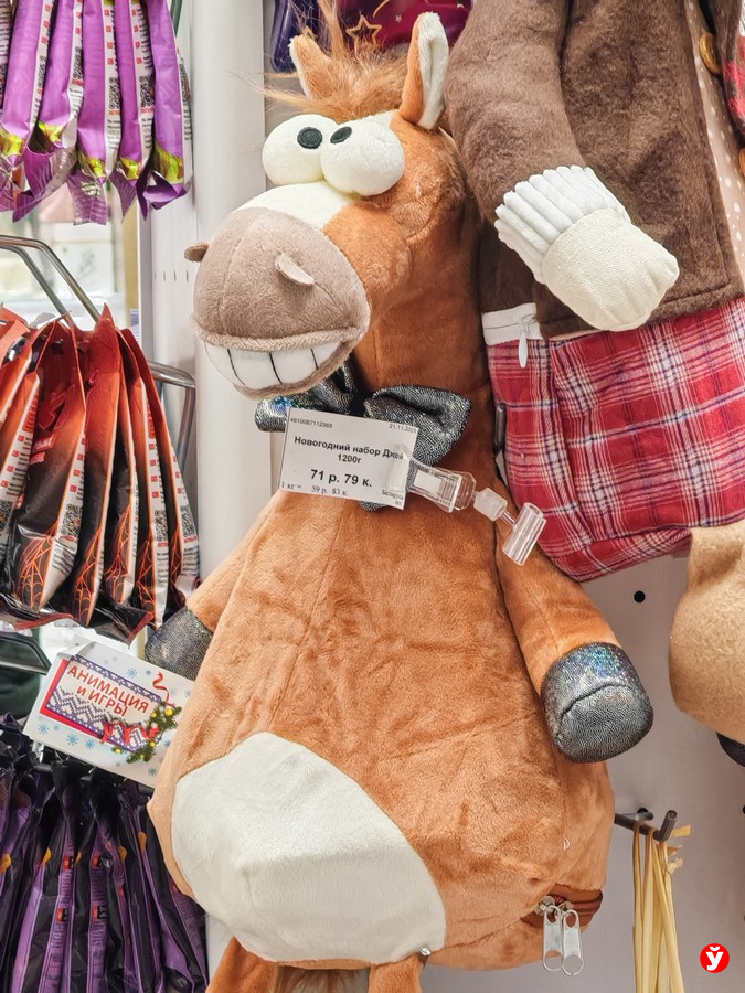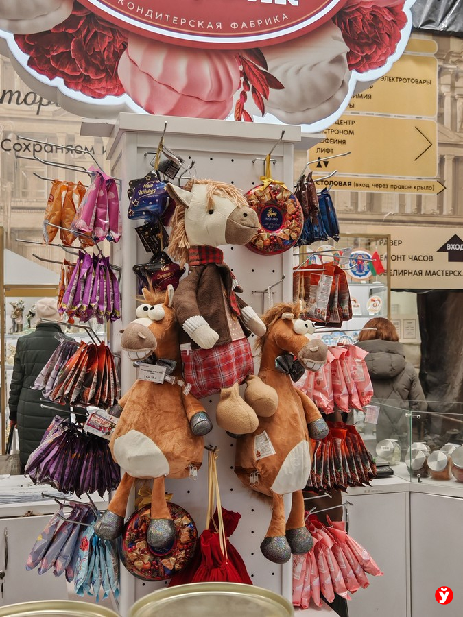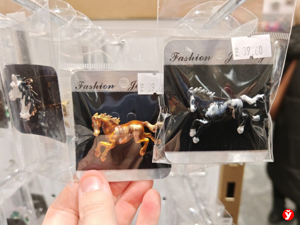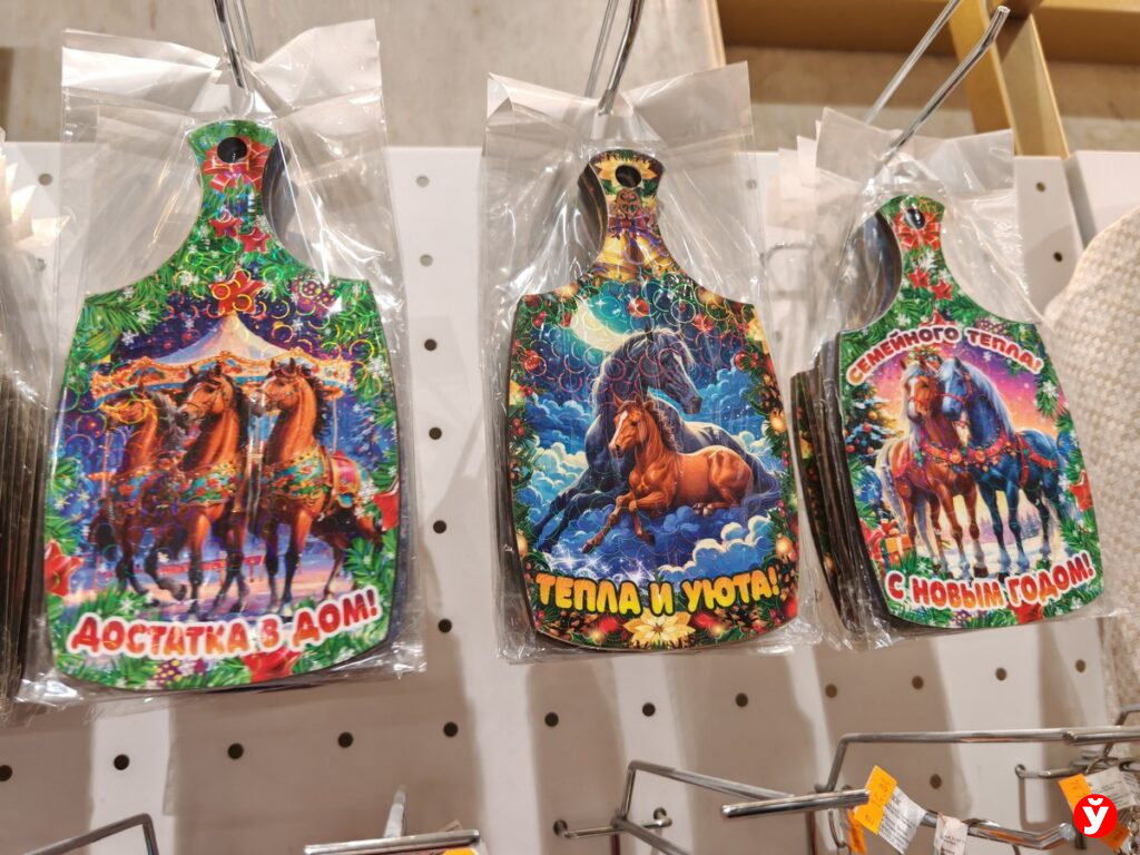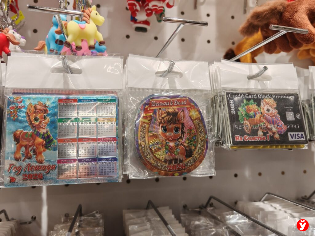 На втором месте по популярности — магнитики в виде коней, подков, календарей и даже банковской карты, украшенной огненной хозяйкой. Подходящий подарок для тех, кто хочет в следующем году занять как минимум третью строчку в списке Forbes! Стоят такие сувениры 5-7 рублей.