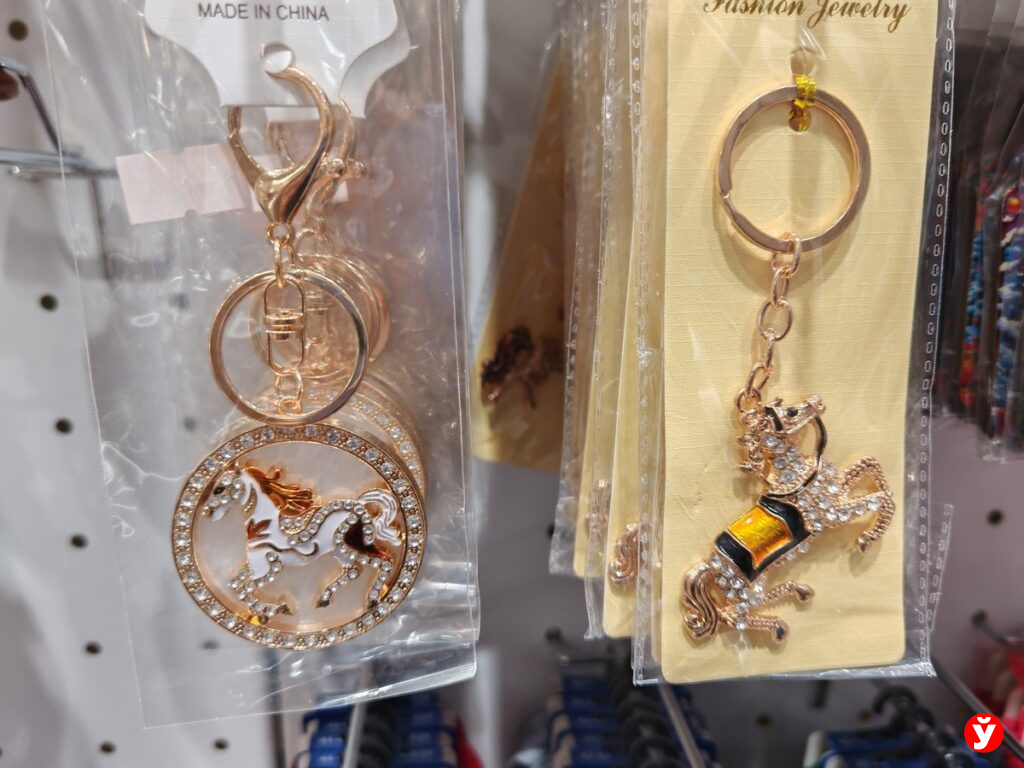 Красиво и «пусть все лопнут от зависти» — это про брелки со стразами в виде все тех же огненных непарнокопытных (не ошибка! Лошадь — единственный современный род семейства лошадиных отряда непарнокопытных). Смотрятся брелки и в правду дорого, элегантно, но слишком уж тяжелые. На телефон — скорее не стоит, на сумку — вполне можно. Цена не кусается: в районе 15 рублей.