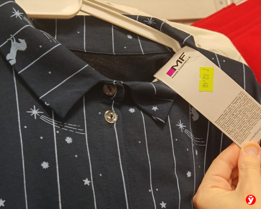 Женских носочков, украшенных символом года, найти так и не удалось. Но зато в одном из магазинов столицы обнаружила интересную пижаму с лошадками. Цвет — глубокий синий, почти черный, рисунок вполне милый. Помните песню «Облака — белогривые лошадки» из советского мультика «Трям! Здравствуйте?» Примерно такие же лошадки из облачков и украшают пижаму. Многие наверняка оценят. Что касается цены изделия — 82,46 рубля за комплект.