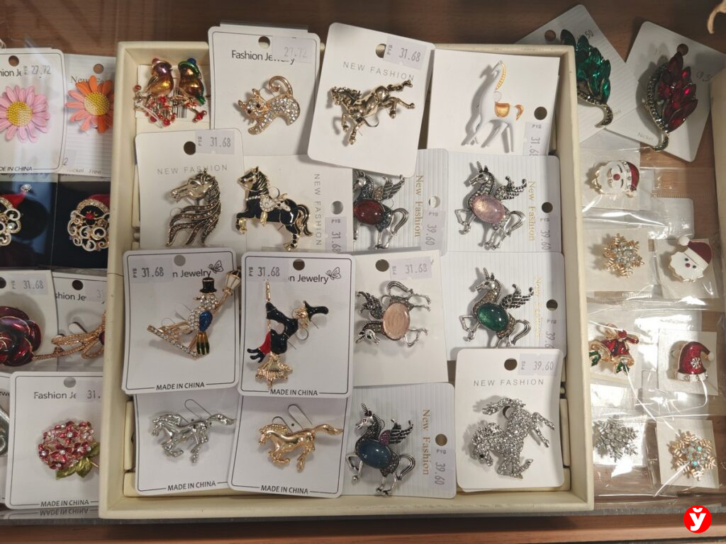В магазинах огромный выбор брошей в виде лошадок – вороных, буланых, гнедых. Как однотонных, так и украшенных стразами, камнями. Некоторые смотрятся изящно, элегантно, другие выполнены несколько грубовато и больше похожи на детскую игрушку. Стоят броши от 27 до 40 рублей.