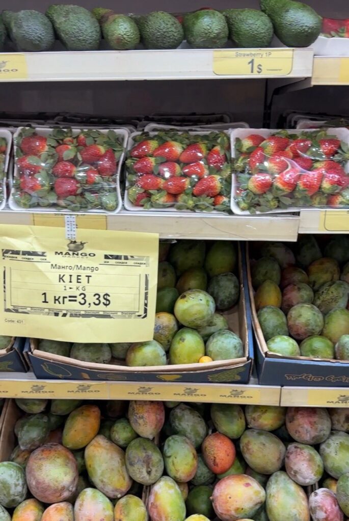 Цены на фрукты зимой в Египте меня приятно удивили. Спелое манго продавали по 3–4 доллара за килограмм, инжир за 1,20 доллара, клубнику по 1 доллару за лоток ягод. За 1 доллар в этих магазинах можно было купить большую пластинку натуральной пастилы, тюбик хорошей местной зубной пасты и другие товары. Наборы весом 150–300 граммов фиников в шоколаде, глазури и с орешками можно было приобрести от 1,5 доллара.
