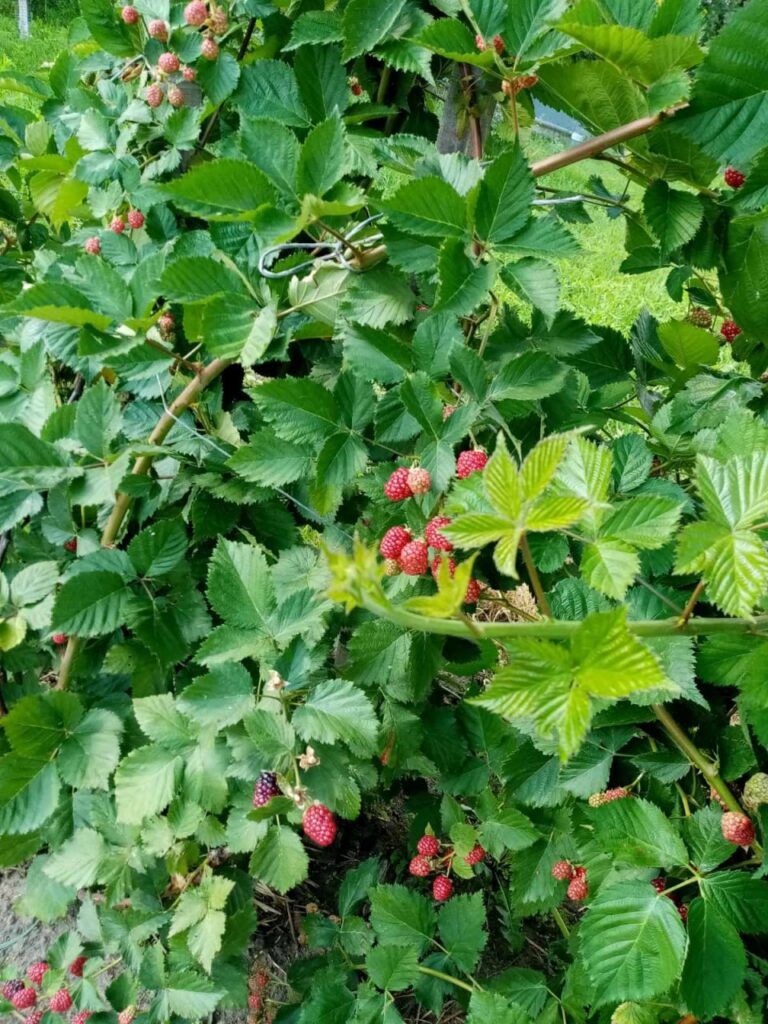 Женщина высадила плодовые деревья, а из ягодных кустарников у нее растут красная и черная смородина, клубника, крыжовник и, конечно, та самая урожайная ежевика.