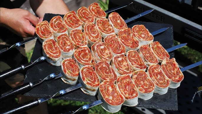 К фаршу добавляем мелко нарезанный лук, петрушку, перец, чеснок, соль и паприку. Перемешиваем, немного отбиваем и выкладываем тонким слоем на лаваш. Сворачиваем в трубочки одинакового диаметра, смазываем растительным маслом и заматываем в пленку. Отправляем в холодильник на несколько часов. Затем нарезаем на порционные кусочки, нанизываем на шампуры и жарим до готовности.