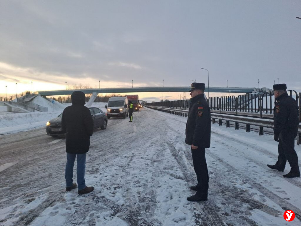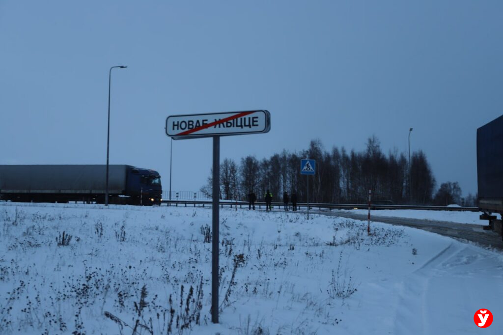 Автомобили, движущиеся из Минска вблизи места ДТП, продолжают маршрут через деревню Новая Жизнь. Сотрудники ГАИ регулируют движение, направляя большегрузный транспорт. Однако на этом участке пути, вблизи деревни Подыгрушье, находится железнодорожный переезд, поэтому колонна автомобилей движется медленно. Дороги расчищены.